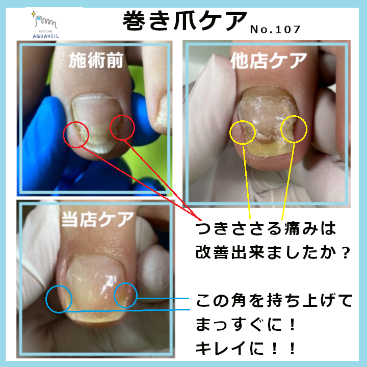 特に、重度の巻き爪や爪甲鉤彎症(変形爪)など、他では対応が難しいトラブルのケアを得意としています。