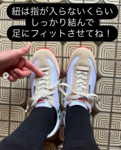そうそう、靴紐は指が入らないくらいしっかり結んで足にフィットさせてくださいね!