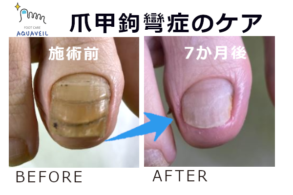 70代のお客様の爪甲鉤彎症のケアをさせていただきました。
