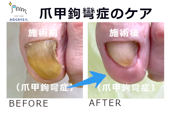 70代のお客様の爪甲鉤彎症のケアをさせていただきました。
