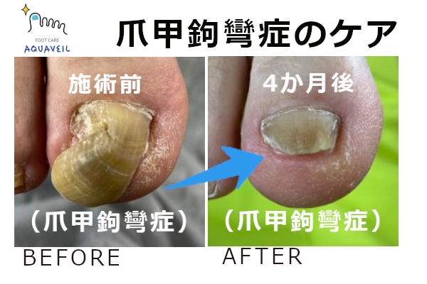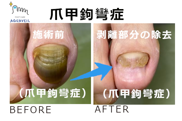 70代のお客様の爪甲鉤彎症のケアをさせていただきました。