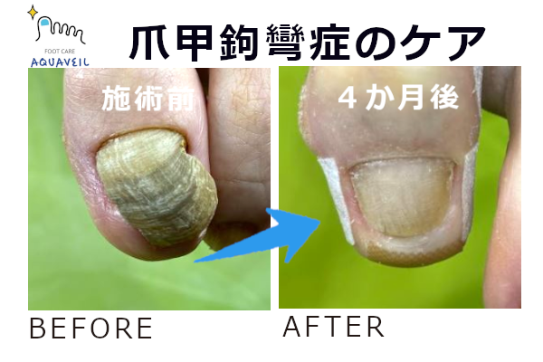 70代のお客様の爪甲鉤彎症のケアをさせていただきました。