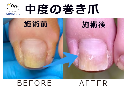 こちらは中度の巻き爪の1回目の施術後の写真です。